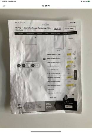Excellent condition refrigerator super clean approximately 3 years old. Bought a larger one so I don’t need this one. Bring a truck and a helper and a dolly load this up.