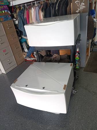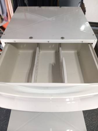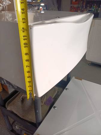 Like new condition (1) pedestal for washer and dryers. Like new condition very clean. 27 in wide 27 in Deep by 12 in high all Hardware is included. Very clean white in color