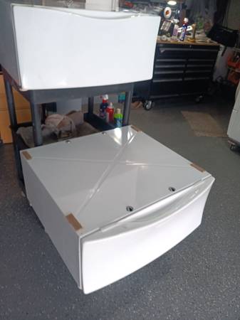 Like new condition two pedestals washer and dryer pedestal 27 in wide by 27 in deep x 12 inches high. Washer and dryer pedestal both in perfect working condition. Very clean like new condition. $100...