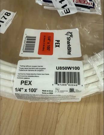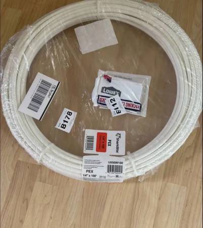 **BRAND NEW** Plumbing Materials All for $100 PEX PIPE 1/4” x 100 feet SharkBite 3/4-in x 100-ft Blue PEX-B Pipe Cross-linked polyethylene tubing for plumbing applications. Model: U870B100....