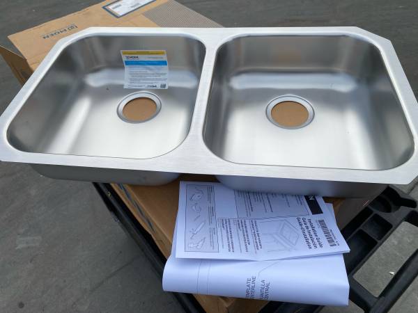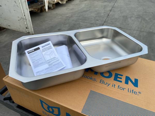 Moen GS18215B 1800 Series 31.75in 18 Gauge Undermount Double Bowl Stainless Steel Kitchen Sink with Rear Drain Have multiple in stock Brand new in boxes *Items located at a business. Business hours...