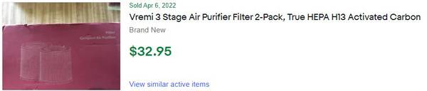 (1) New Vremi 3-Stage Air Purifier Replacement Filter. $15