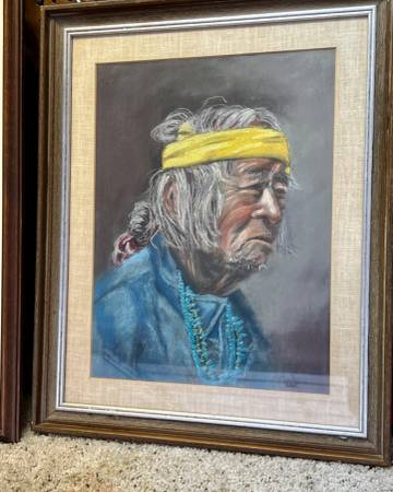 2 Original Native American Art works by RUBY SPAID a local southern California artist Both pieces are stunning, original pieces of Native Americans and are framed in Excellent Condition 1) Native...