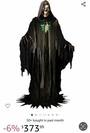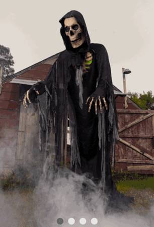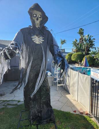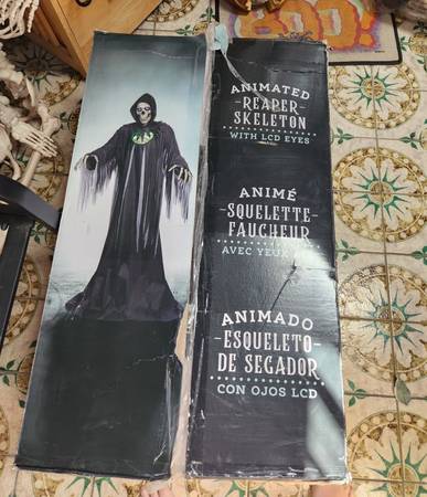 This is my super cool giant 10ft Grim Reaper holiday decoration. In perfect condition. ONLY USED ONCE! And original box. he is really well-made He talks., Lights up, really great for parties. HE IS TALL! I bought this for over $370 last year but we just don't have room for it in our shed. It's yours for $300 and that's a firm price. You will love it.