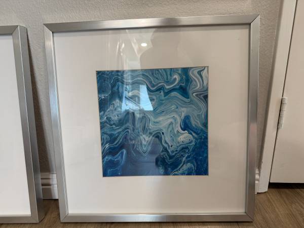 Set of two prints Blue and white abstract/nature/water Excellent Condition Ready to hang on the wall 21 1/4" x 21 1/4" $15 OBO