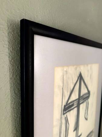 Frame: Black WOOD frame with gray matting