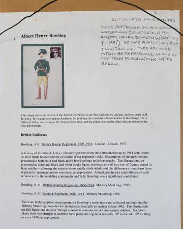 Albert Henry Bowling Original Watercolor. Circa 1970. Lot 3 of 5 Albert Henry Bowling was a British military book illustrator, and this original may have been published in various books. Please view...