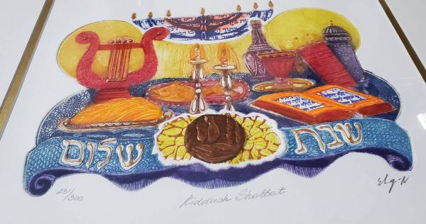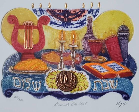 Amram Ebgi "KIDDUSH SHABBAT" Hand Signed Limited Edition Gold Foil Lithograph 231/300