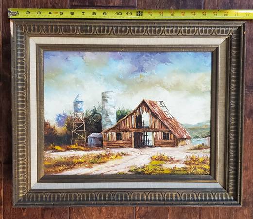 Antique/Vintage Framed Farm Scene Painting. Lot 2 Nice looking old frame. A little chip at top left corner of frame. A very well done painting! Please view photos for measurements to better describe.