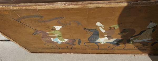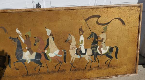 Condition: Several small touch-ups to gold foil and some other small touch-ups. Frame has loss to paint as can be seen in the photos. Measures 73" x 31 1/4"