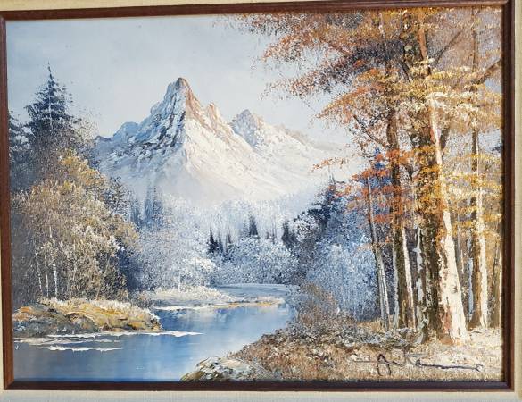 Vintage Framed Landscape Painting. Lot 5 Great colors. Beautiful painting. Signed at bottom. Nice looking frame. Has some scuffs. Please view photos for measurements and to better describe.