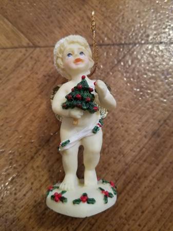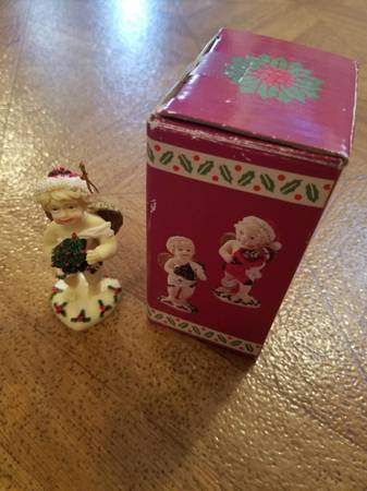 Vintage Holiday cherub Christmas decoration ornament in excellent condition and in original packaging. (Approx. 3-1/2"h x 1"diameter) $8