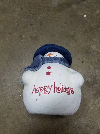Styrofoam snowman with 'Happy Holidays' wording (approx. 10"h x 6"w x 6"d) $5