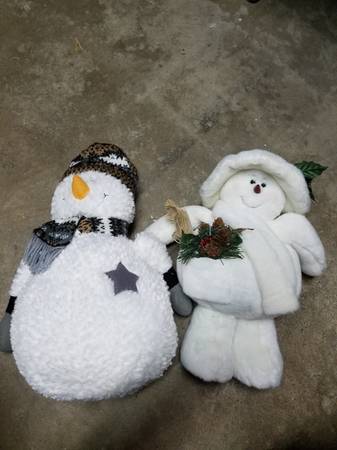 Stuffed snowman holding pine cones and garland by Crazy Mountain (approx. 17"h x 14"w x 7"d) Bought new for $33. $25
