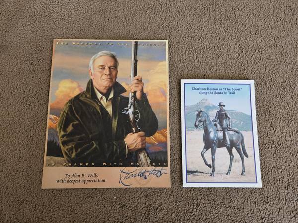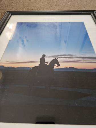 Framed photo of Charlton Heston's "The Scout" silhouette at dusk. $100