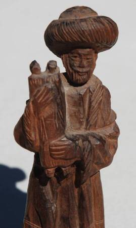 Hand Carved Haredi Rabbi holding the Torah Scrolls. 9" Tall