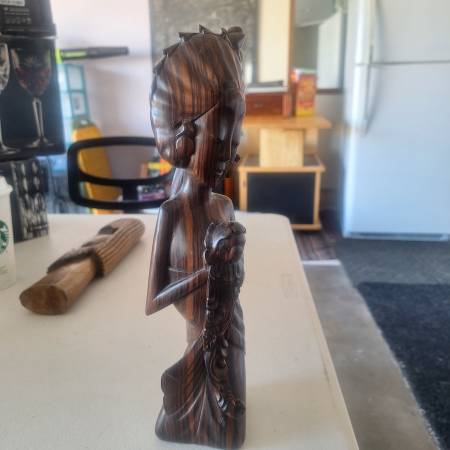 This is a handcrafted Burmese figurine of a woman. Made of rosewood. Retails for about one hundred dollars. Asking 50.⁰⁰ dollars.