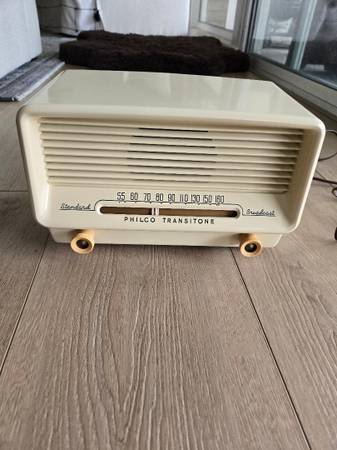 1951 Philco Transitone Radio Still Works (mainly a decoration item) and is in Excellent Original Condition! Make offer. Please call 714-478-721five to come get it. Thanks.