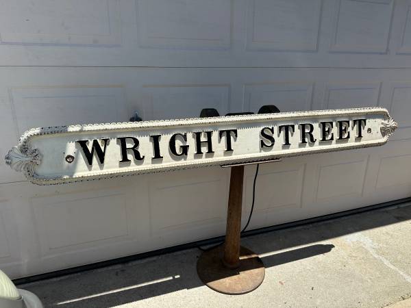 Bought in the 80’s and reported to be close to 100yrs old then, so if true, do the math and we’re looking a close to a century and a half old street sign.