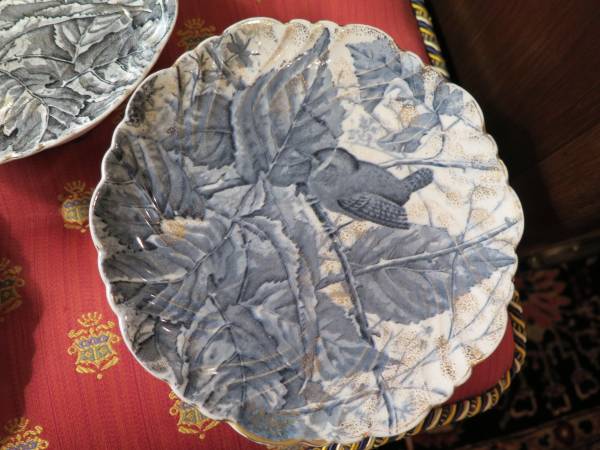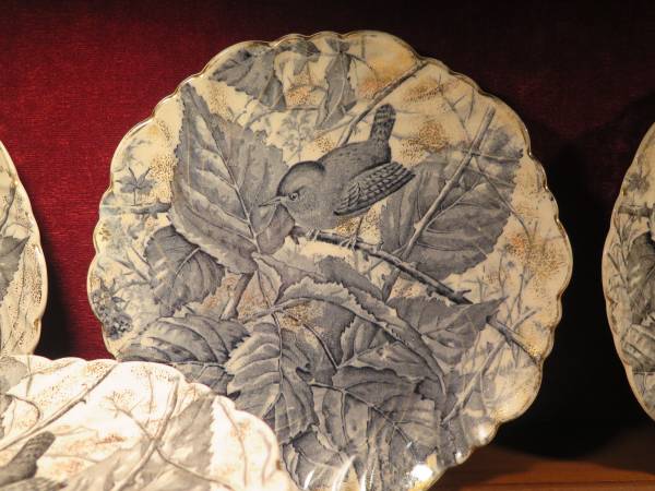 Elegant English Transferware Dessert Set Bird- Wrens in the Grenfell Pattern with gilding Set of 8 Pieces - 2 Compotes and 6 dessert plates F. W. and Co. Aesthetic Staffordshire Transferware Set *...