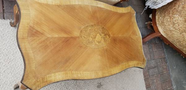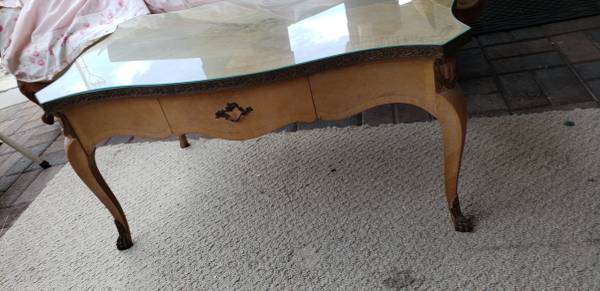 Beautiful mahogony coffee table, refinished, carved gallery, bookmatched veneer, ball and claw feet. 36" X 24", 16" height. $450. ,, OTHER ONES AVAILABLE, $250 TO $1200.