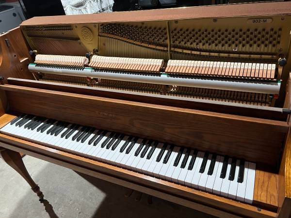 The Kawai 902-M Upright Piano is a beautifully crafted instrument with a sleek 46" height and a rich Satin Walnut finish. Made by the reputable brand Kawai in the United States in the year 2000, this piano features 88 keys and 3 pedals, providing a versatile and high-quality playing experience for musicians of all levels. The elegant brown color and traditional design make it a stunning addition to any home or studio.