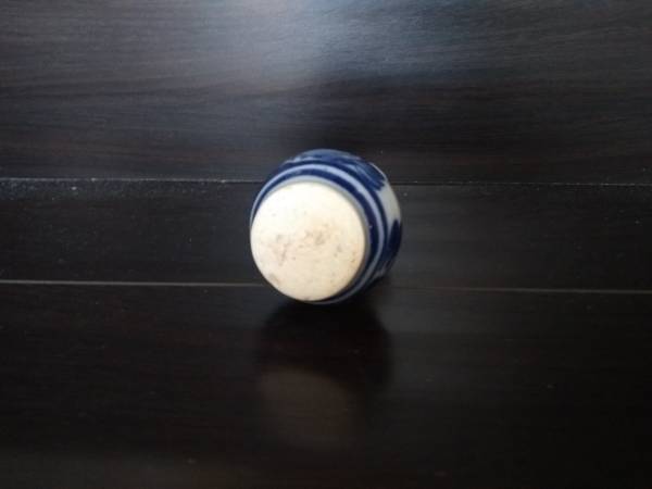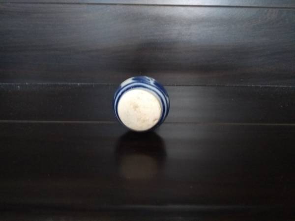 Small but very beautiful Chinese Yongzheng period porcelain water dropper, 7 cm tall, with diffused cobalt blue pigment and a flat unglazed bottom smooth like those porelains from Ming Dynasty...