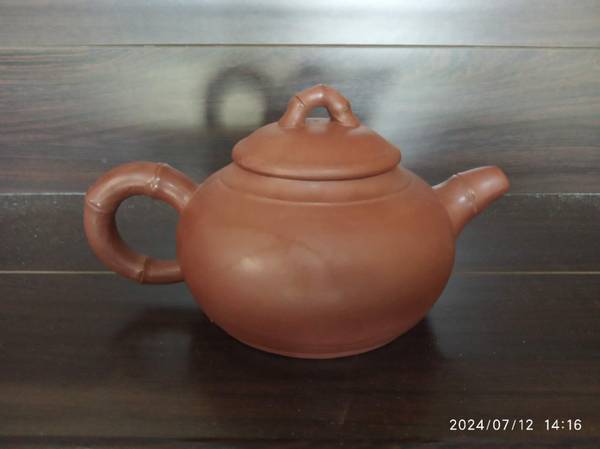 This is an extraordinary Zisha clay bamboo style teapot with seal marks of master Gu Jing Zhou on bottom and handle, superior workmanship, from 1960s. It is in excellent condition without damage, except for some tea stains or sediments here and there. It was used before, but recent years it is in display.