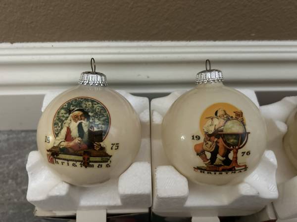 Vintage Christmas ornament set of 8 by Norma Rockwell. No chips or cracks, all in original package.