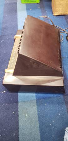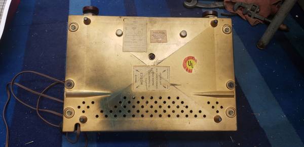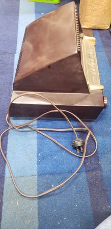 It is not currently working and does have a crack on the case as shown in the picture but looks very cool and has a Jetsons vibe about out nearly. Measures about 14" wide, 10" deep and 8" tall.