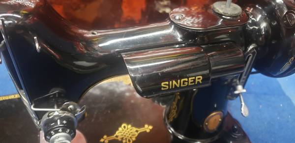 1951 model, 100 year/centennial badged Singer Featherweight sewing machine in excellent cosmetic condition. Runs smoothly as well and comes as shown in the original case and with all the accessories shown (buttonholer, manual, etc) as well. (Some of these may be for other model machines as well, but I'm selling everything pictured together only)