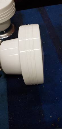 Matching pair of vintage ceiling lamps. The glass shades are in great shape on both of them. The metal bases show their age a bit but over all still quite nice. They have the original ceramic bulb sockets as well.