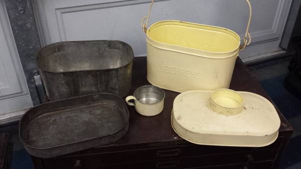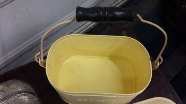 In really nice condition and comes with the original cup (that goes on the lid) and both bowls/trays that fit inside of it.