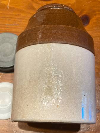It is marked Western Stoneware, which is the successor company to Macomb. Overall very nice shape. There are no blue marks, as that is a reflection from another item. 7" tall, 2.75" across the top,...