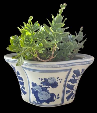 Timeless Elegance: Elevate your plant display with this Blue and White Ceramic Porcelain Planter Pot, featuring a classic and tasteful design that adds timeless charm to any space