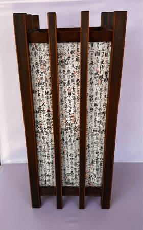 Japanese Lantern Kanji Calligraphy Paper Andon Wood Oil Lamp Wabi Sabi Antique