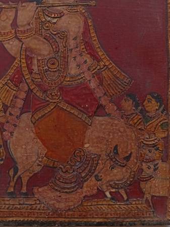 Antique Indian Tanjore Painting of Krishna as Venugopala