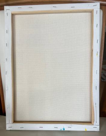 This painting represents the use of limited materials and space and reacting to the architectural proportions of the stretcher frame. This painting has a geometric idiom.