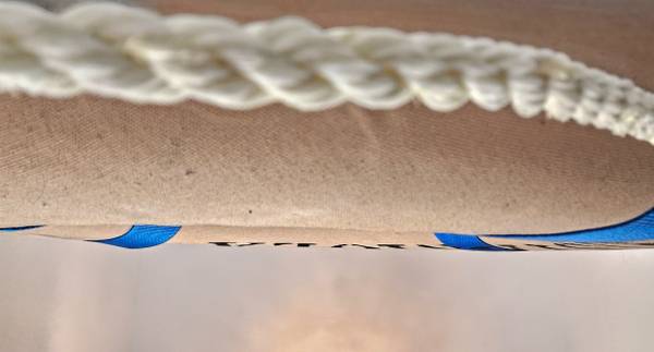 Great looking authentic functional ship life preserver ring. It is made in old style construction, featuring a canvas cloth exterior, a braided attached throw line, and "HISPANIOLA" handpainted on the ring. It is in excellent overall condition. A striking piece to display.