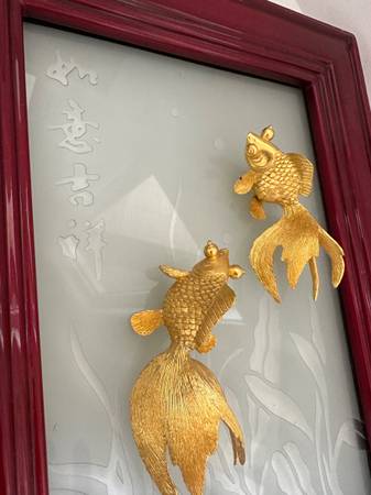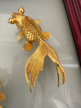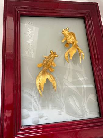 24K Gold Plated Goldfish Swimming Lacquer Framed