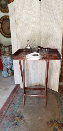 FULLY RESTORED BUTLERS TRAY WITH STAND, TRAY 18 X 27; STAND, ADJUSTABLE 17 X 33
