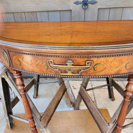 DEMI-LUNE CONCOLE TABLE, LOVELY CARVING $450