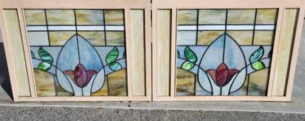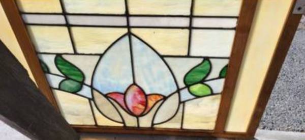 ⭐️⭐️LEADED GLASS ANTIQUE TULIP ROSE MOTIF - antiques - by owner -...