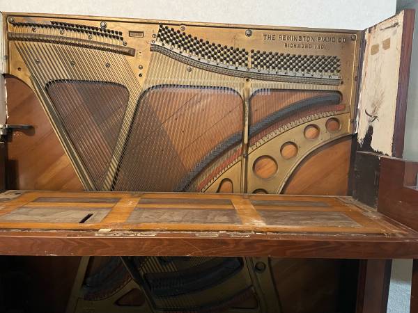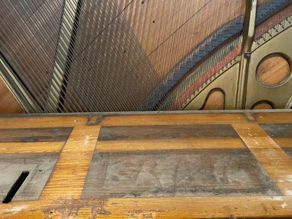 Vintage piano soundboard with strings and wooden frame. Perfect for the artist or craftsperson who is looking for reclaimed antique wood or a piano soundboard. I have done most of the hard work of removing components. Also can be used for scrap metal. Sad, but true. Please be ready with a few strong friends and a truck to haul this to your workshop.