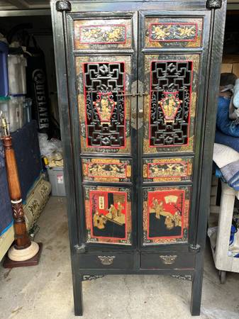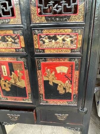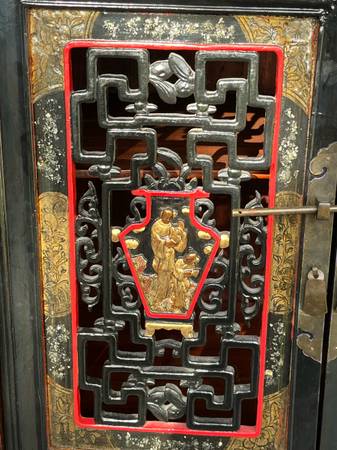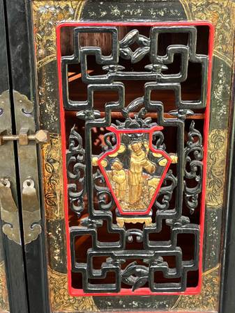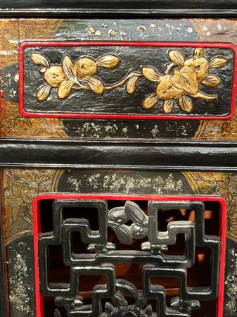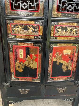 Wonderful antique Chinese 樟木 Zhãng Mu (Camphor wood) carved and painted cabinet. Excellent quality with beautiful details. Looks like lately it has been refinished. Condition is very good...