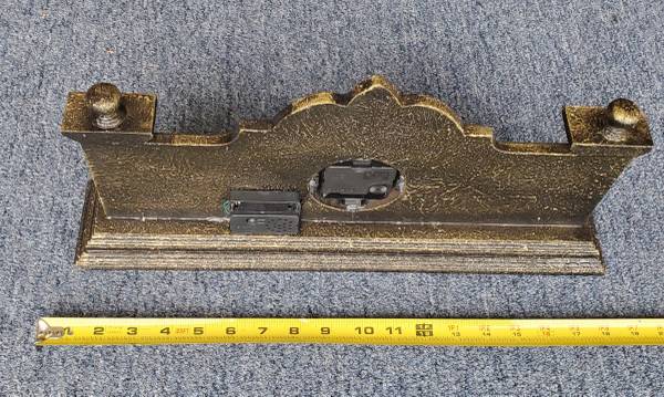 Mantel Clock with Chimes. Lot 1 of 3. Battery operated. Composite material. 18" wide. Requires 2 AA batteries. Old stock new in box. Made in China.