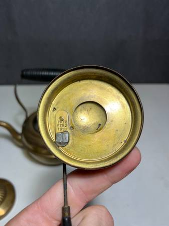 3) Antique Brass Gooseneck Tea Pot w/Burner.