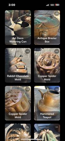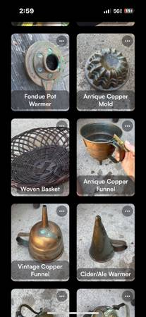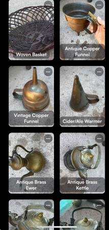 $30 and up, negotiate for the whole lot. My mother ran antique stores throughout Orange County and we have collection of brass and copper objects. This includes watering cans, teapots, remolds, kettles, cauldrons, boilers, vases, trays and more. $25-275 each item. Here are a few.