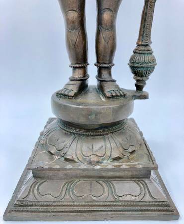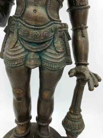 A bronze figure of Hanuman from South India, Tamil Nadu, from the mid 20th century made in the lost wax method.