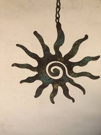 This large, heavy and substantial contemporary piece is striking. Hang vertically by the long chain for a dramatic silhoutte.